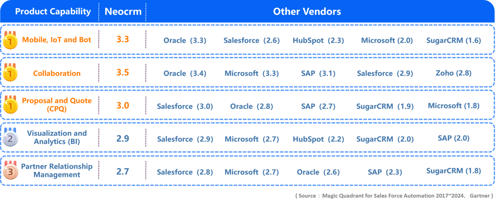 ( Source:Magic Quadrant for Sales Force Automation 2017~2024,Gartner )
